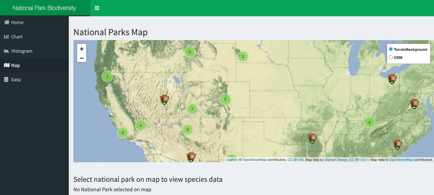 |  | National Park Biodiversity Data Visualization using R shiny (Course Project) Supervised by Prof. Mohammad Ali Alamdar Yazdi (JHU), 2022